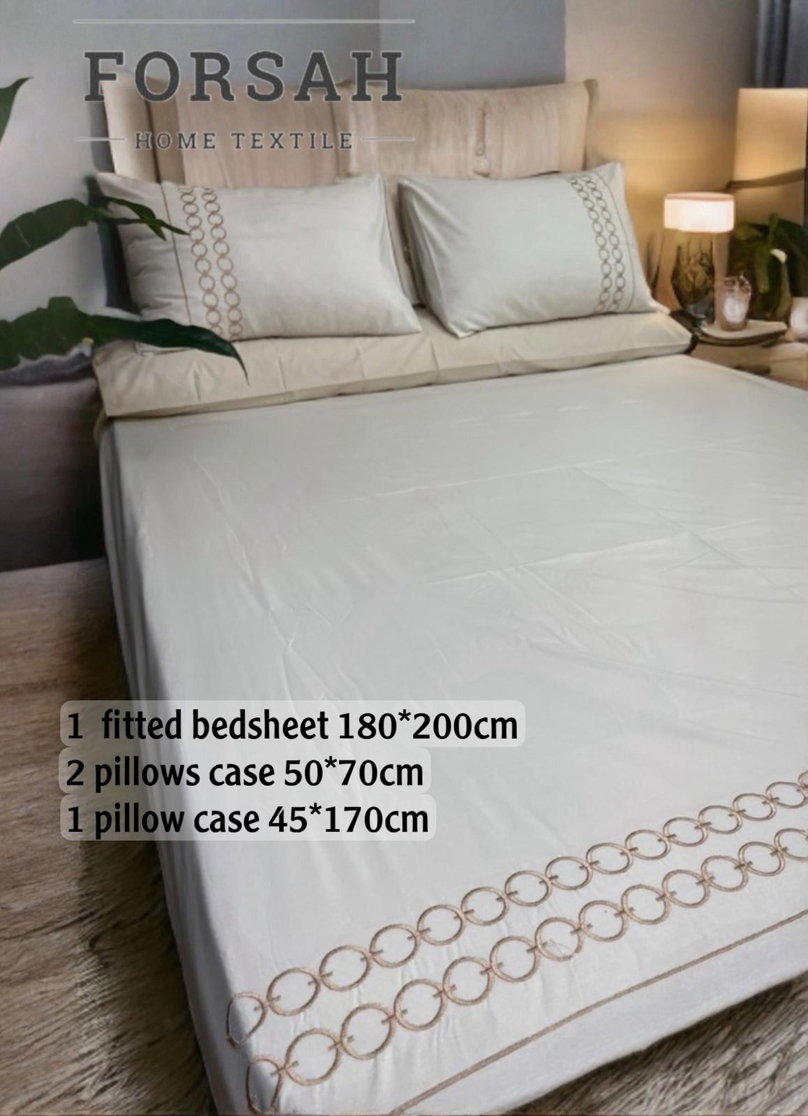 ملاية قطن 100% تطريز حرير4 قطع 1 ملاية سرير مطاطية مقاس 180×200 سم 2 أغطية مخدات مقاس...